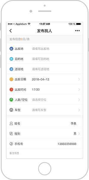 手机一键自定义发布找车/找人内容,方便快捷,信息更全面
